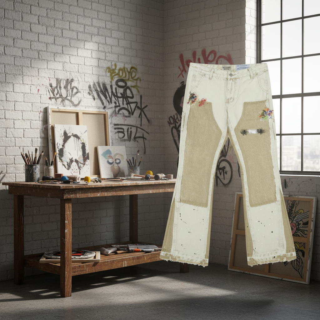 Gallery Dept Hand-Painted Camo Patchwork Denim Jeans Unisex