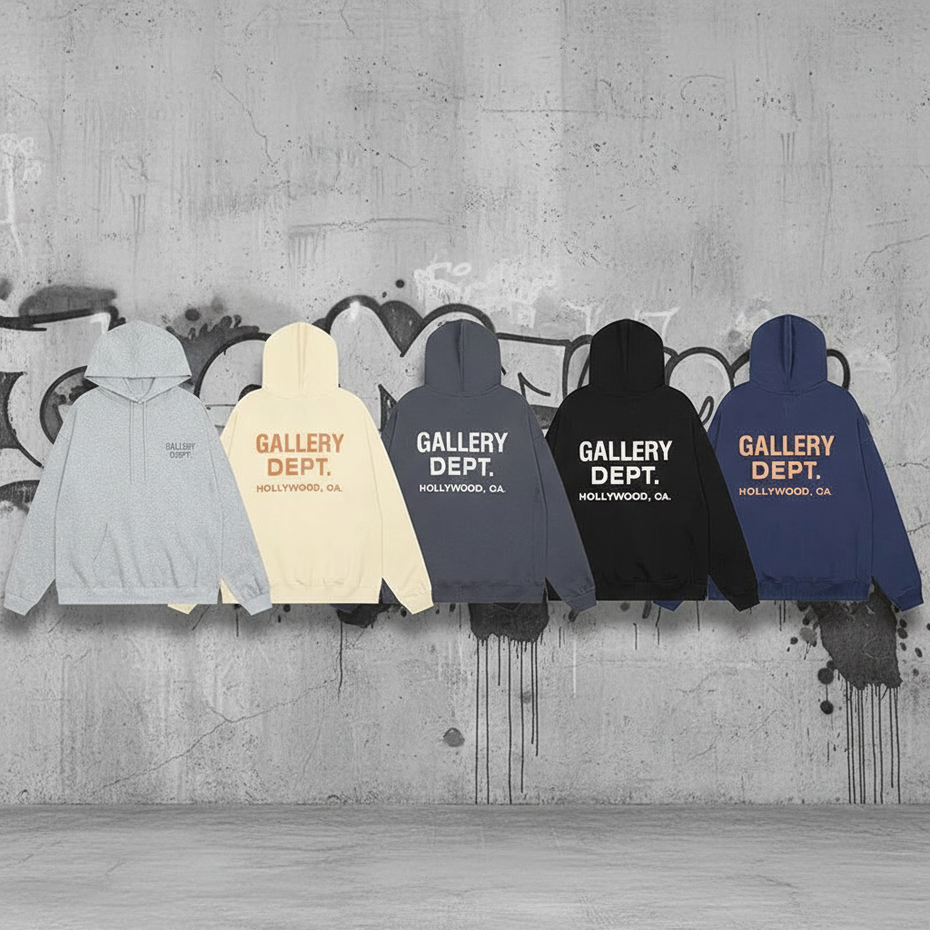 Gallery Dept. hoodies in multiple colors, premium cotton, stylish streetwear from Hollywood, perfect for casual wear and layering all seasons.