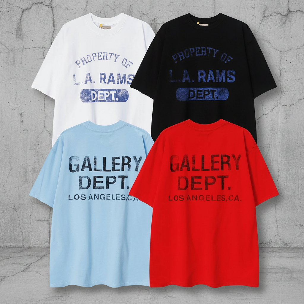 Gallery Dept stylish unisex casual graphic T-shirts, inspired by Los Angeles streetwear, available in multiple colors for a trendy and comfortable everyday look.