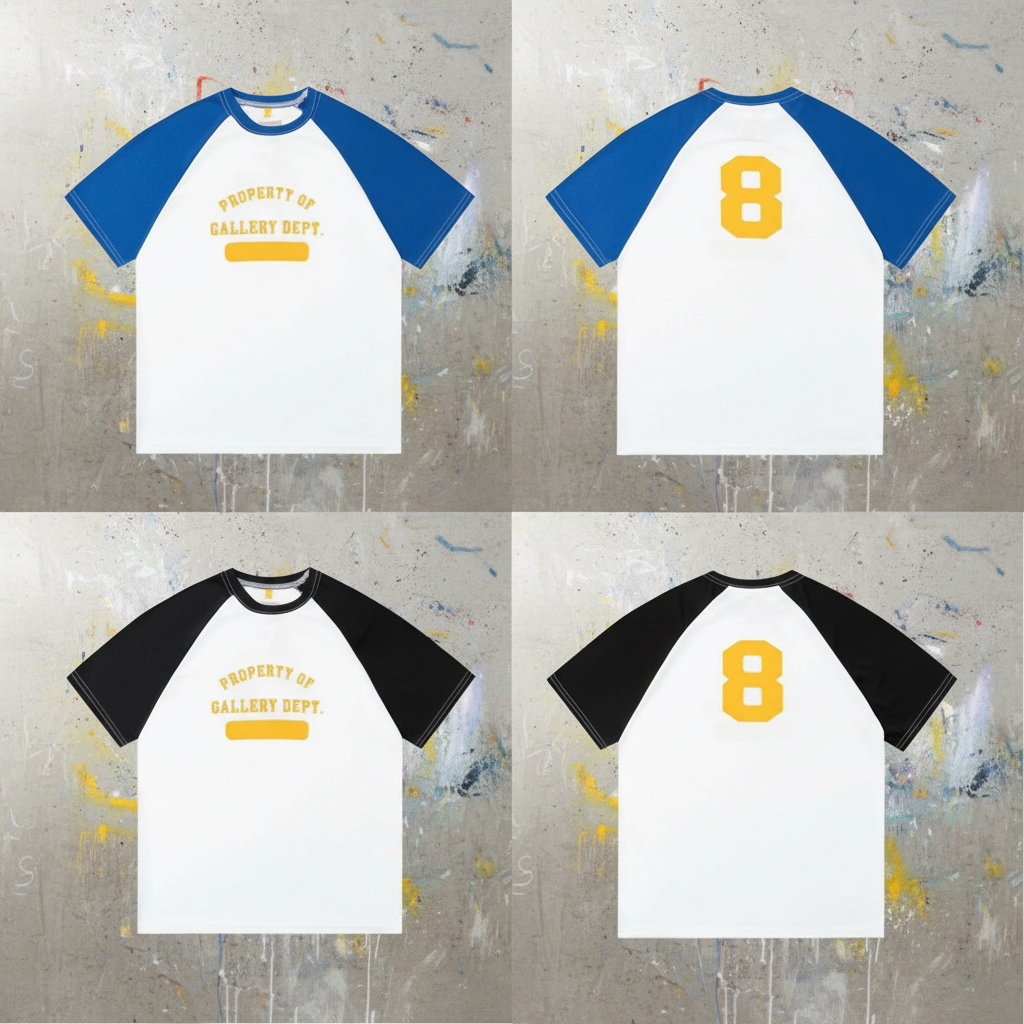 Gallery Dept. Baseball Style T-Shirt with contrast raglan sleeves, bold front logo print, and large number 8 on back for a sporty, casual look.
