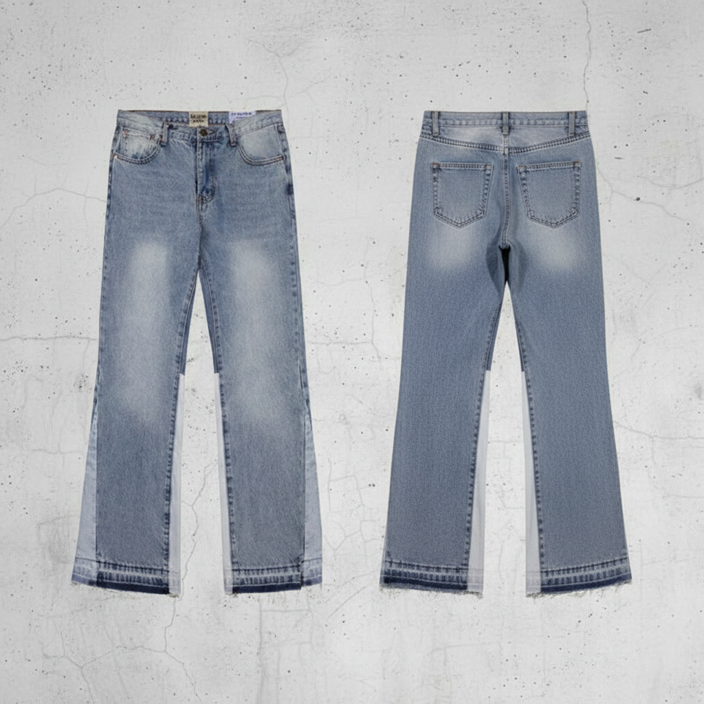 Gallery Dept Vintage Wash Wide-Leg Jeans with Raw Hem, Stylish Distressed Denim Pants for Casual Streetwear Fashion.