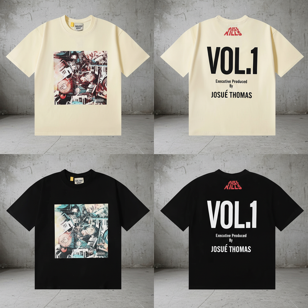 Gallery Dept VOL.1 Graphic Tee by Josué Thomas, stylish streetwear t-shirt with artistic front print and bold back text, perfect for casual fashion and urban style lovers.