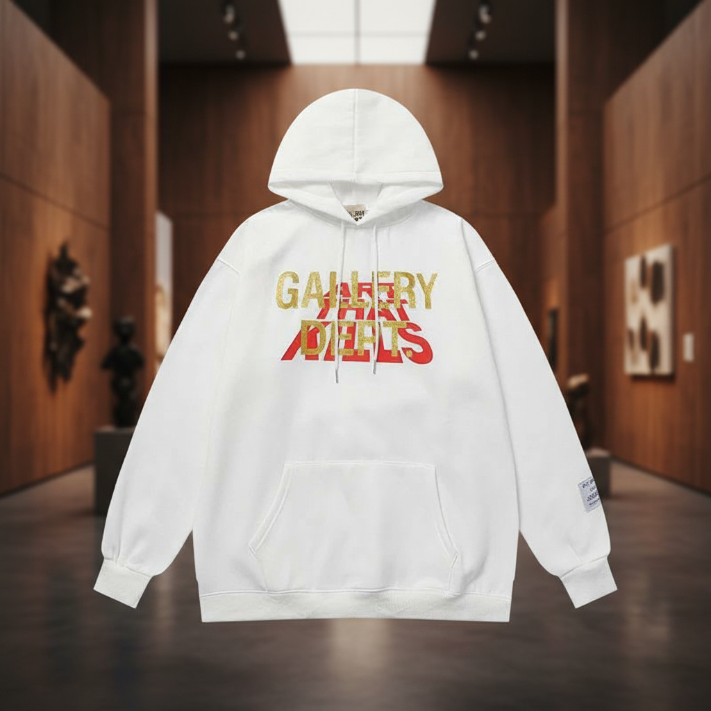 / GALLERY DEPT White Fleece Hoodie Unisex Streetwear Soft Cotton