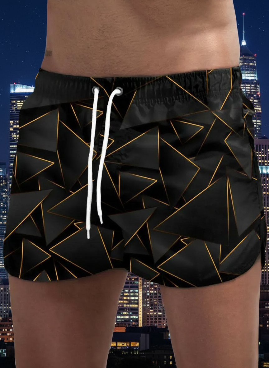 Geometric Black Beach Swim Shorts for Men