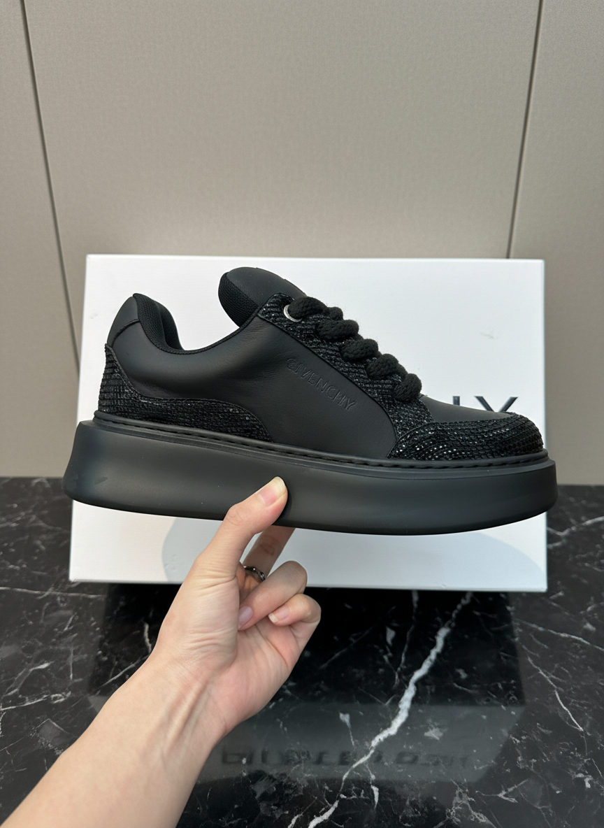 Givenchy Black Chunky Sole Sneakers, premium leather with textured detailing, stylish lace-up design for modern casual wear.