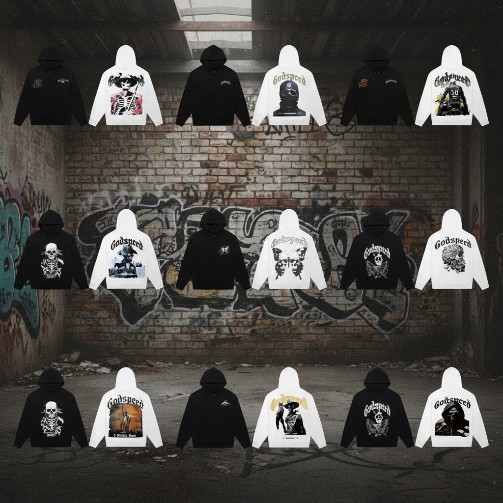 Godspeed hoodies with bold graphic prints, streetwear style, premium fabric, perfect for casual wear, skate, hip hop fashion, and urban trends worldwide.