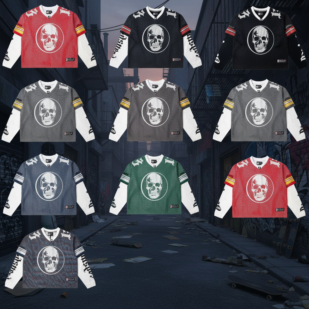 Godspeed Skull Mesh Football Jersey Long Sleeve Shirt