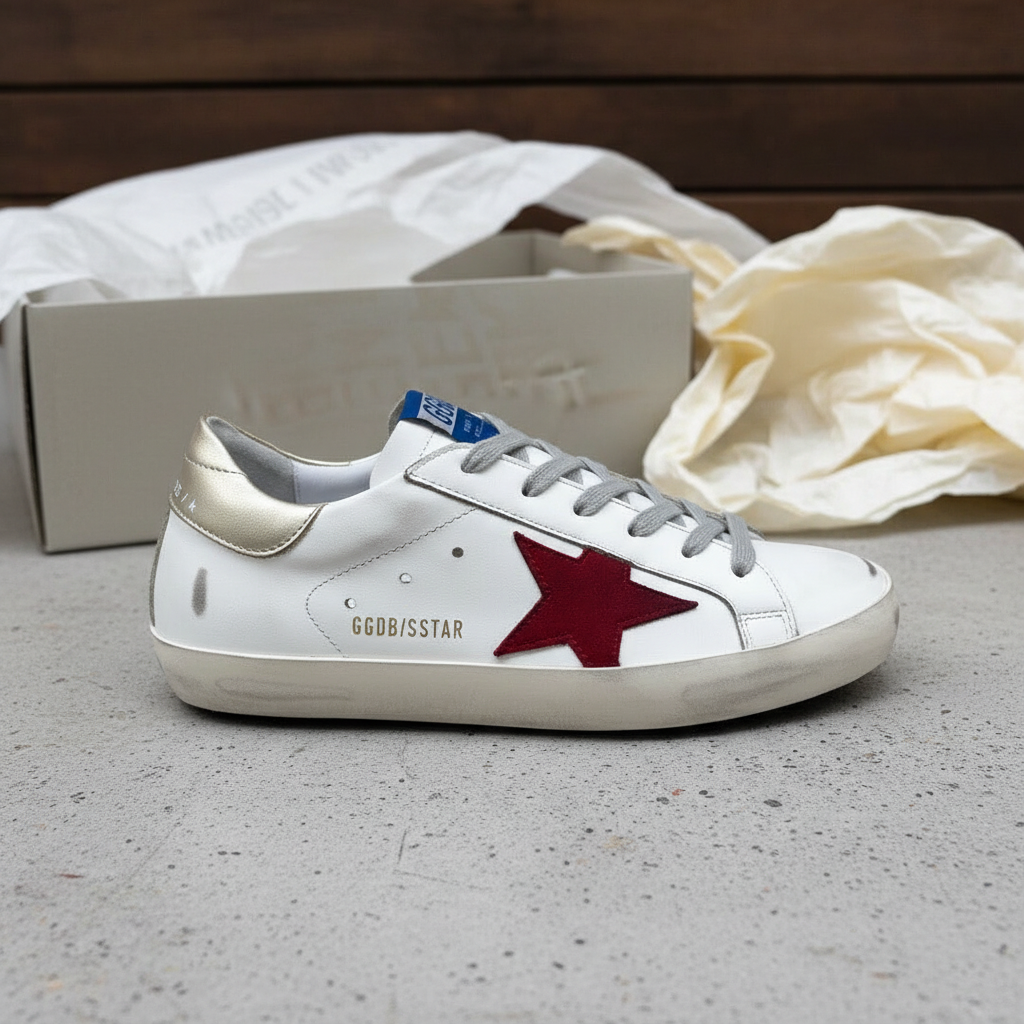 Golden Goose White Leather Sneakers Red Star