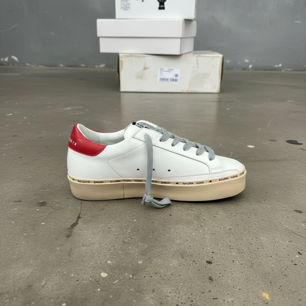 Golden Goose White Red Leather Sneakers