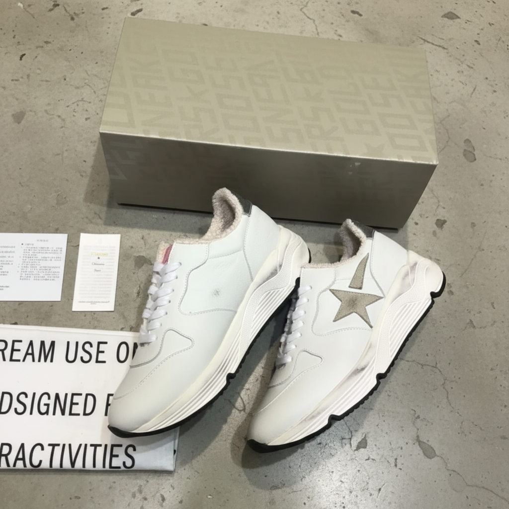 Golden Goose white leather sneakers with signature star, cushioned sole, and modern design for premium comfort and style. Perfect for casual and streetwear looks.