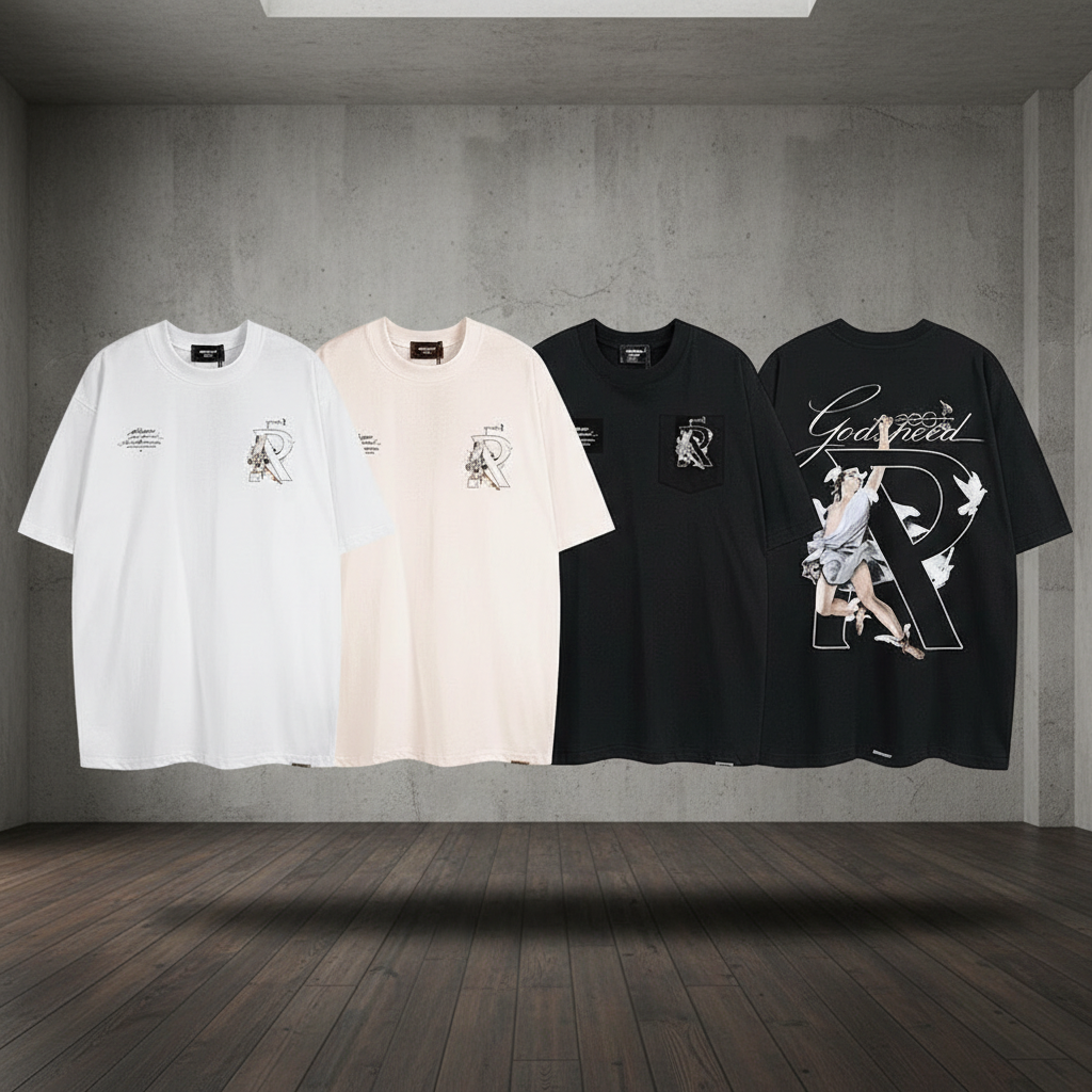 T-ShirtsRepresent stylish graphic print tees, premium cotton, casual fit, perfect for streetwear fashion and everyday comfort in white, beige, and black.