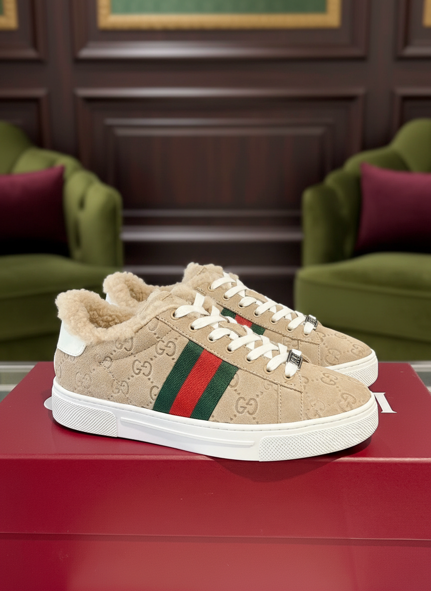 Gucci Beige Fur Lined Casual Sneakers Shoes