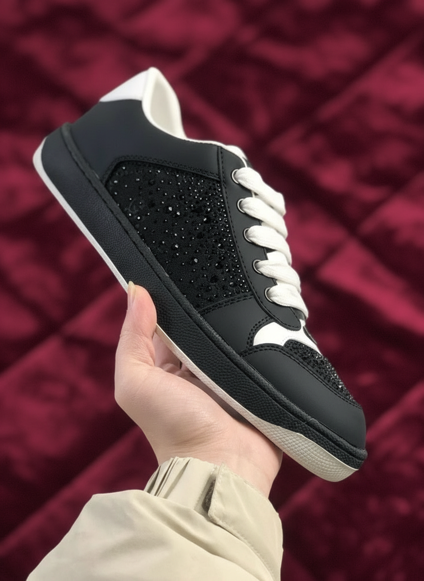 Gucci Black Sneakers with Crystal Detailing, Stylish Low-Top Design, Comfortable Fit, Sizes 35-44 Perfect for Casual or Trendy Outfits