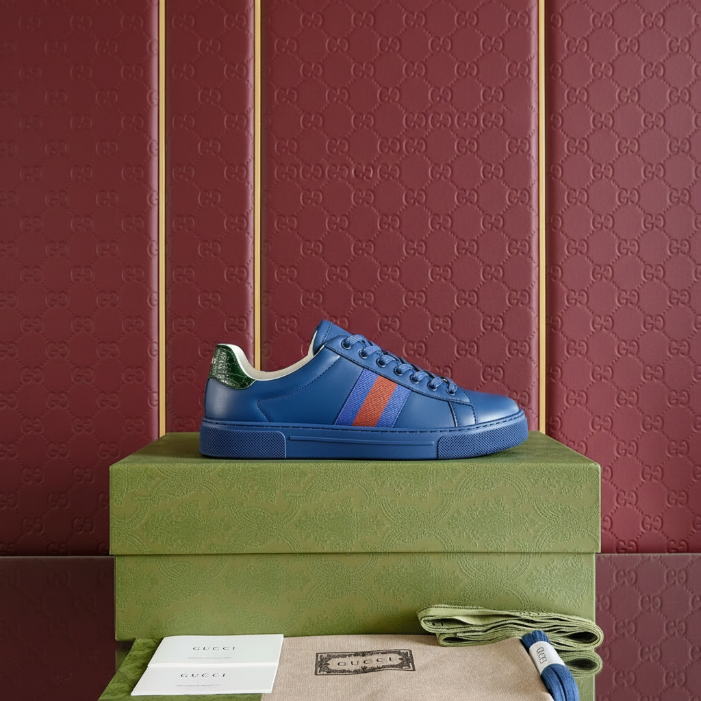 Gucci Blue Leather Low Top Sneakers
