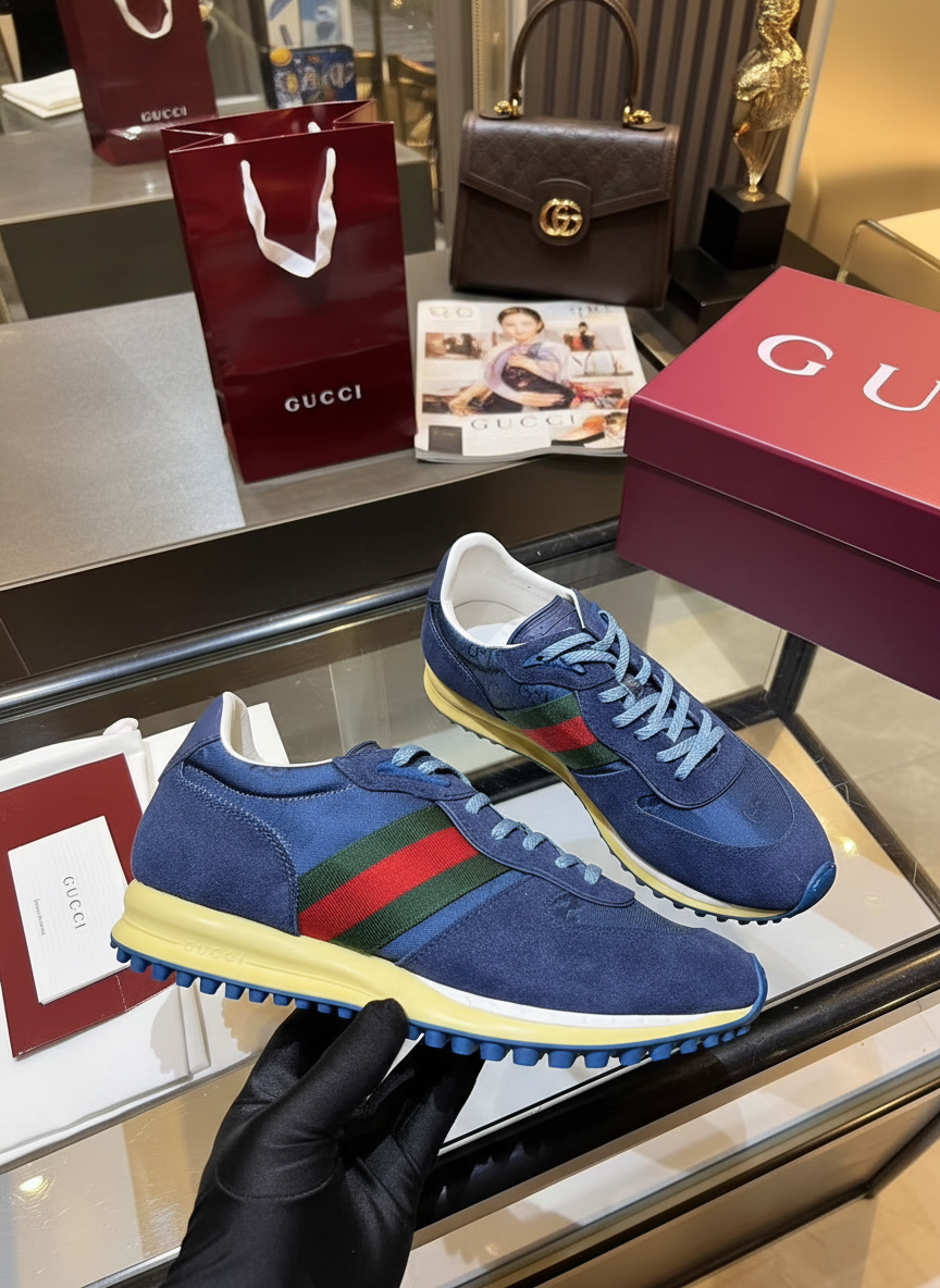 Gucci Blue Suede Retro Running Sneakers