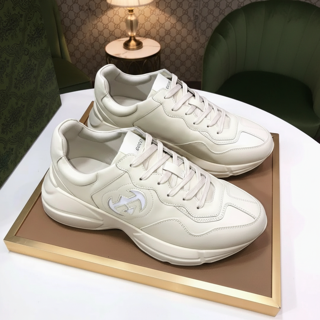 Gucci Men’s Luxury Leather Sneakers, Stylish White Chunky Sole Casual Shoes for Fashion and Comfort