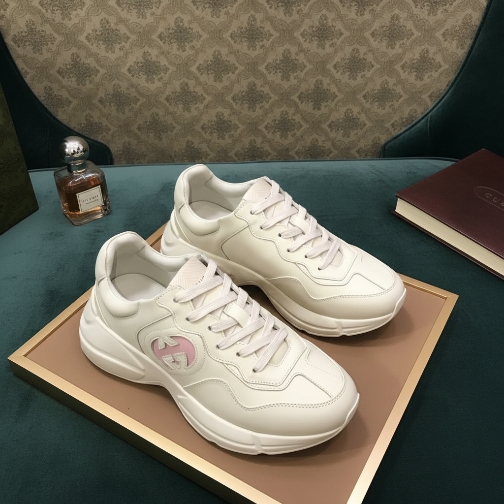 Gucci Leather Sneakers White Pink Logo Casual Shoes