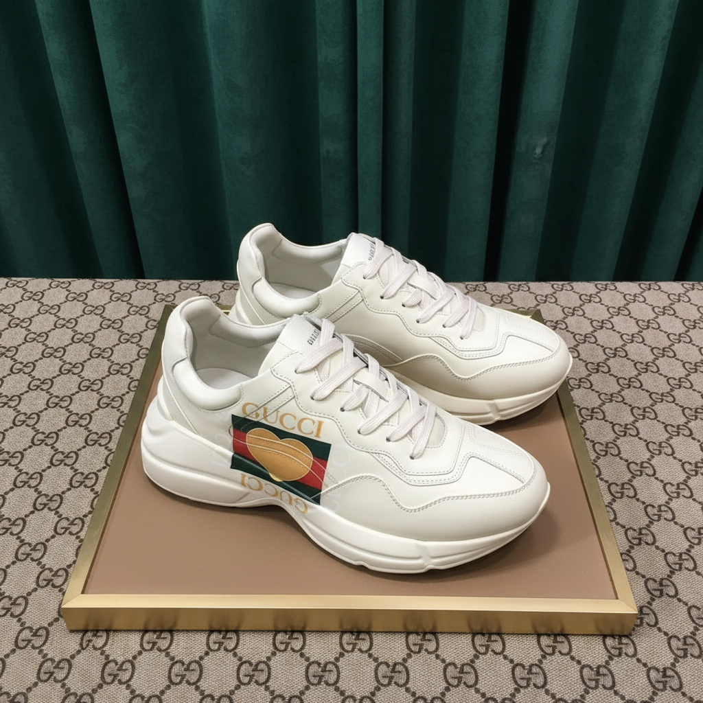 Gucci Men’s Leather Sneakers with Heart Print, Stylish Luxury Casual Shoes for Comfort and Fashion