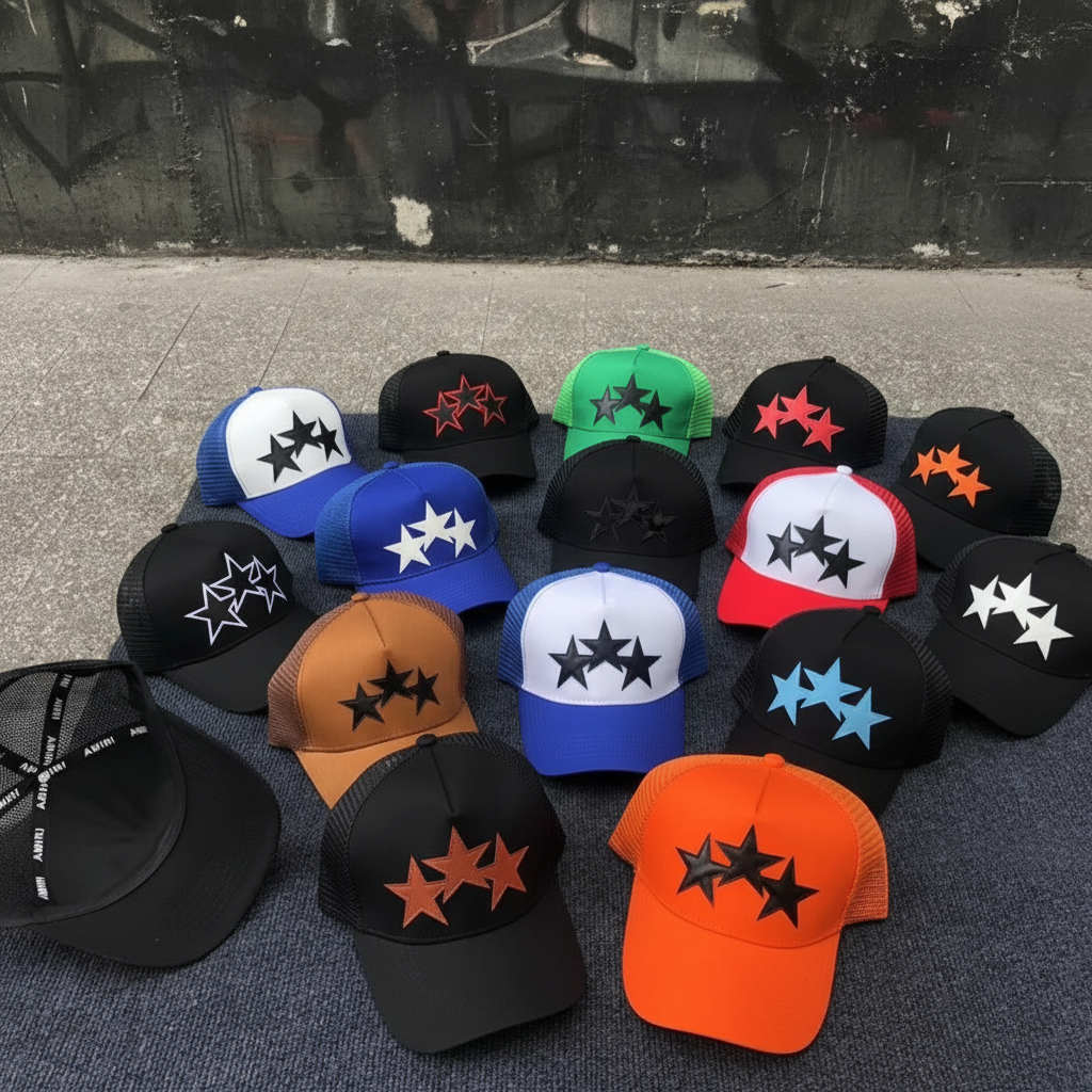 HatsAmiri stylish star mesh baseball caps in multiple colors, breathable design for casual wear, outdoor sports, and street fashion accessories.