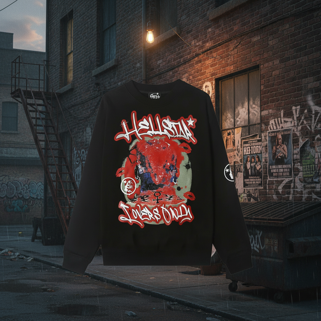 / Hellstar Black Cotton Crewneck Sweatshirt – Unisex Geometric Print