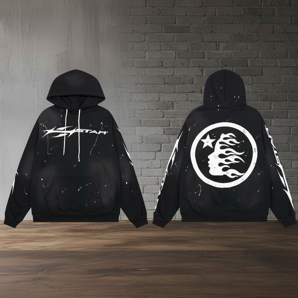 / Hellstar Black Cotton Hoodie – Unisex Streetwear Skull Print Hooded Sweatshirt