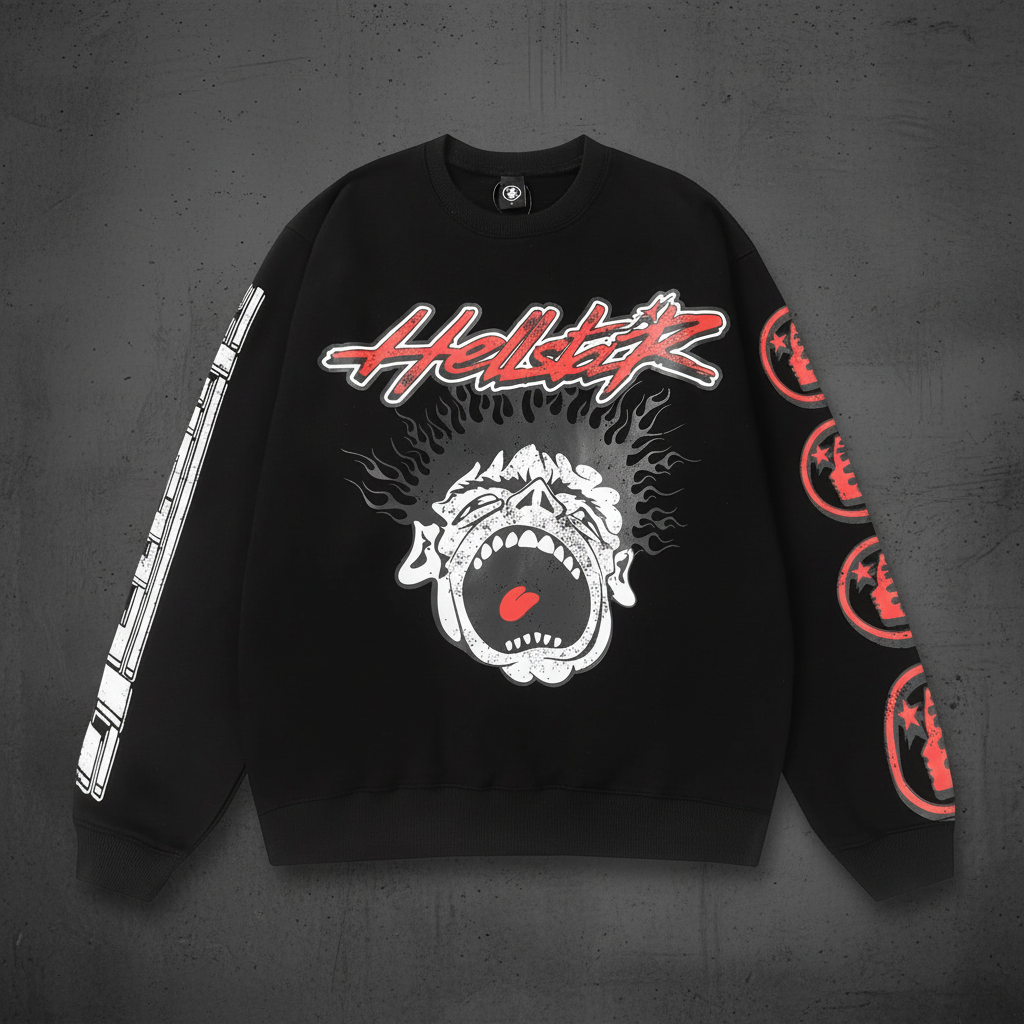 / Hellstar Black Cotton Sweatshirt – Unisex Graffiti Flame Print Streetwear