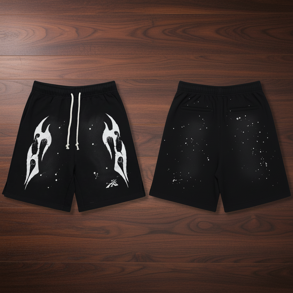 / Hellstar Black Flame Graffiti Shorts – Unisex Summer Drawstring High-Street