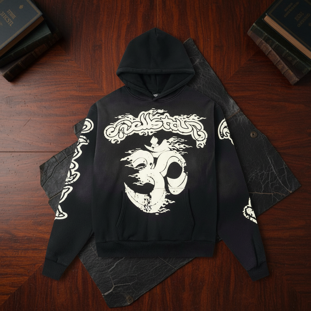 / Hellstar Black Fleece Hoodie – Unisex Streetwear with Abstract Graphics