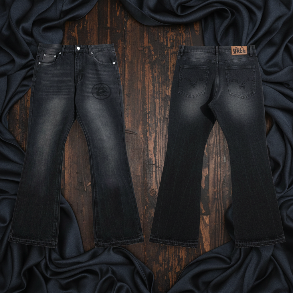 Hellstar Black Washed Flare Jeans: Vintage Unisex Denim