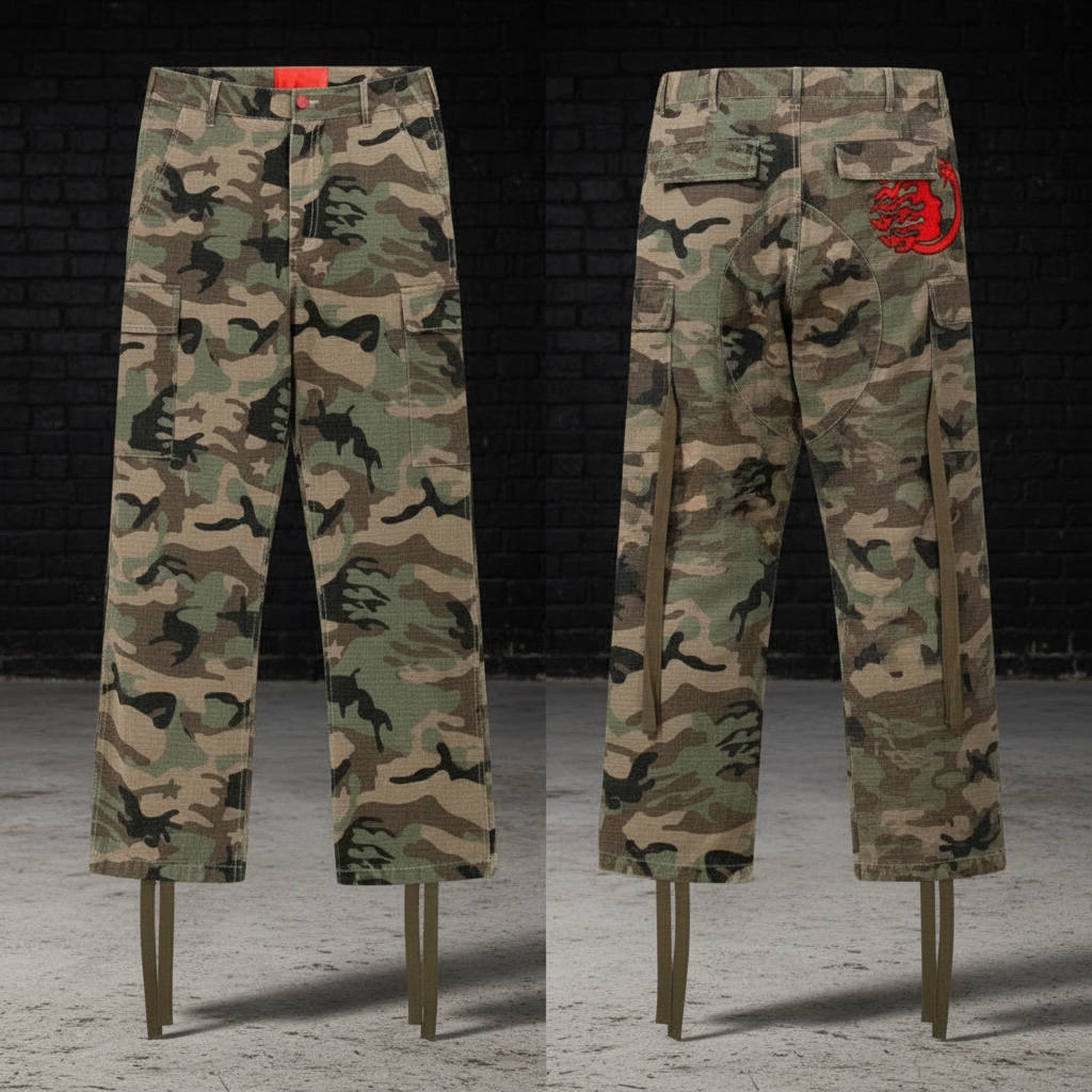 Hellstar Camo Cargo Jeans: Adjustable Unisex Denim Pants