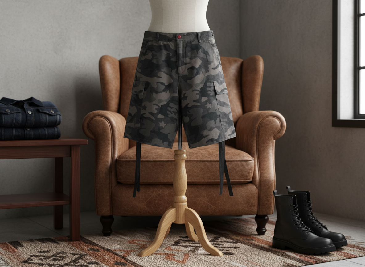 / Hellstar Camo Denim Shorts: Grey/Black Streetwear Unisex Summer