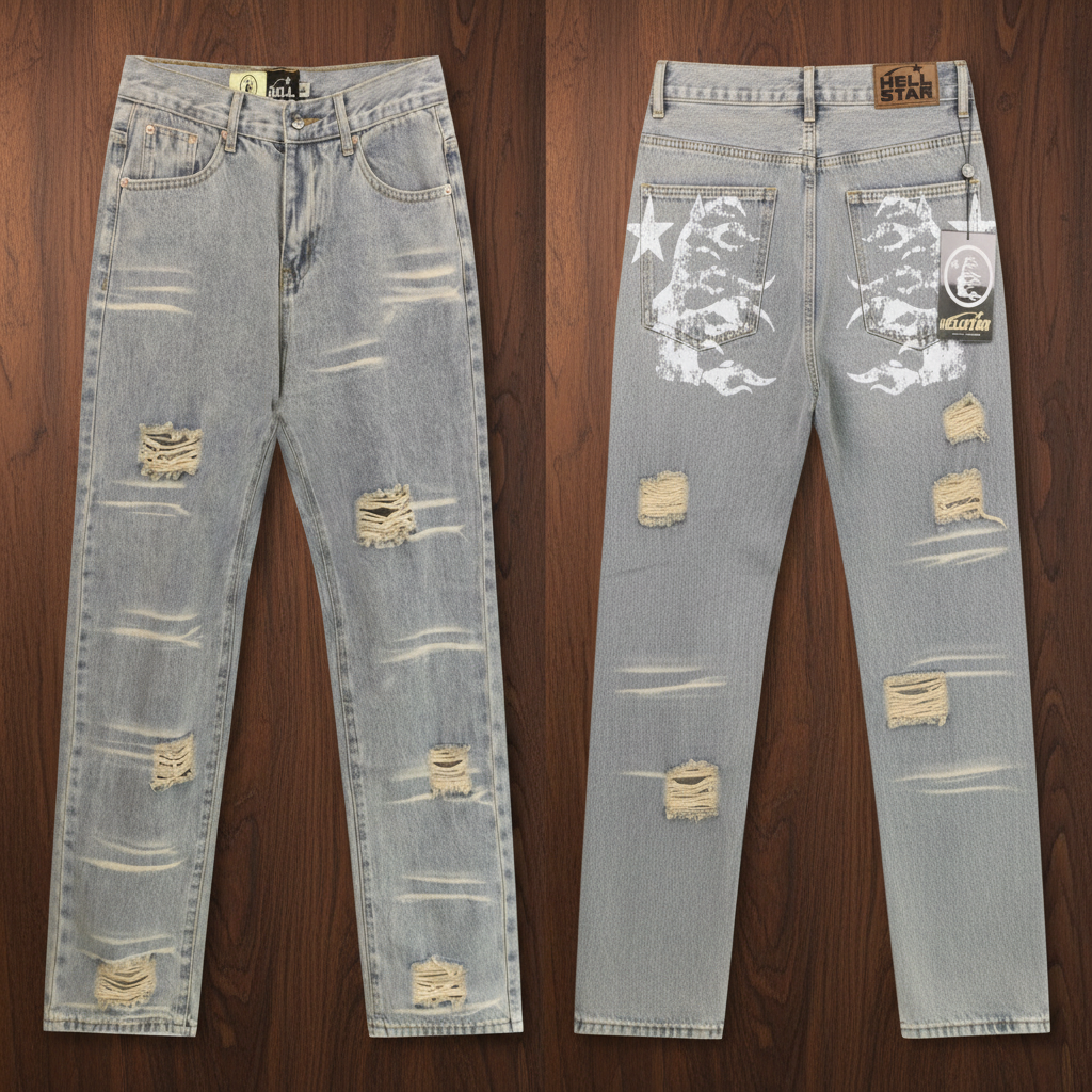 Hellstar Distressed Light Gray Ripped Jeans | Vintage Denim