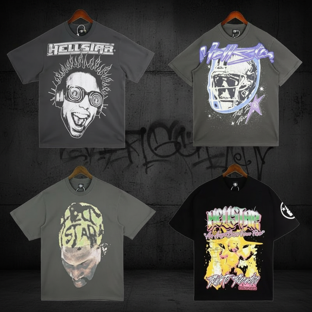 Hellstar T-Shirts featuring bold graphic prints, unique streetwear style, and premium cotton for comfort, perfect for casual wear and fashion-forward looks.