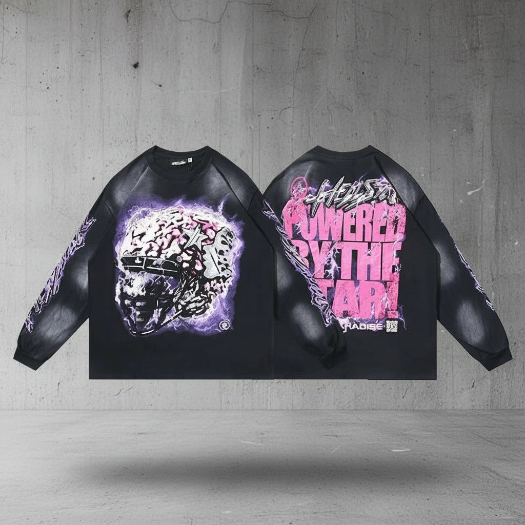 Hellstar HEADSPIN Black Washed Long Sleeve Tee | Unisex Streetwear