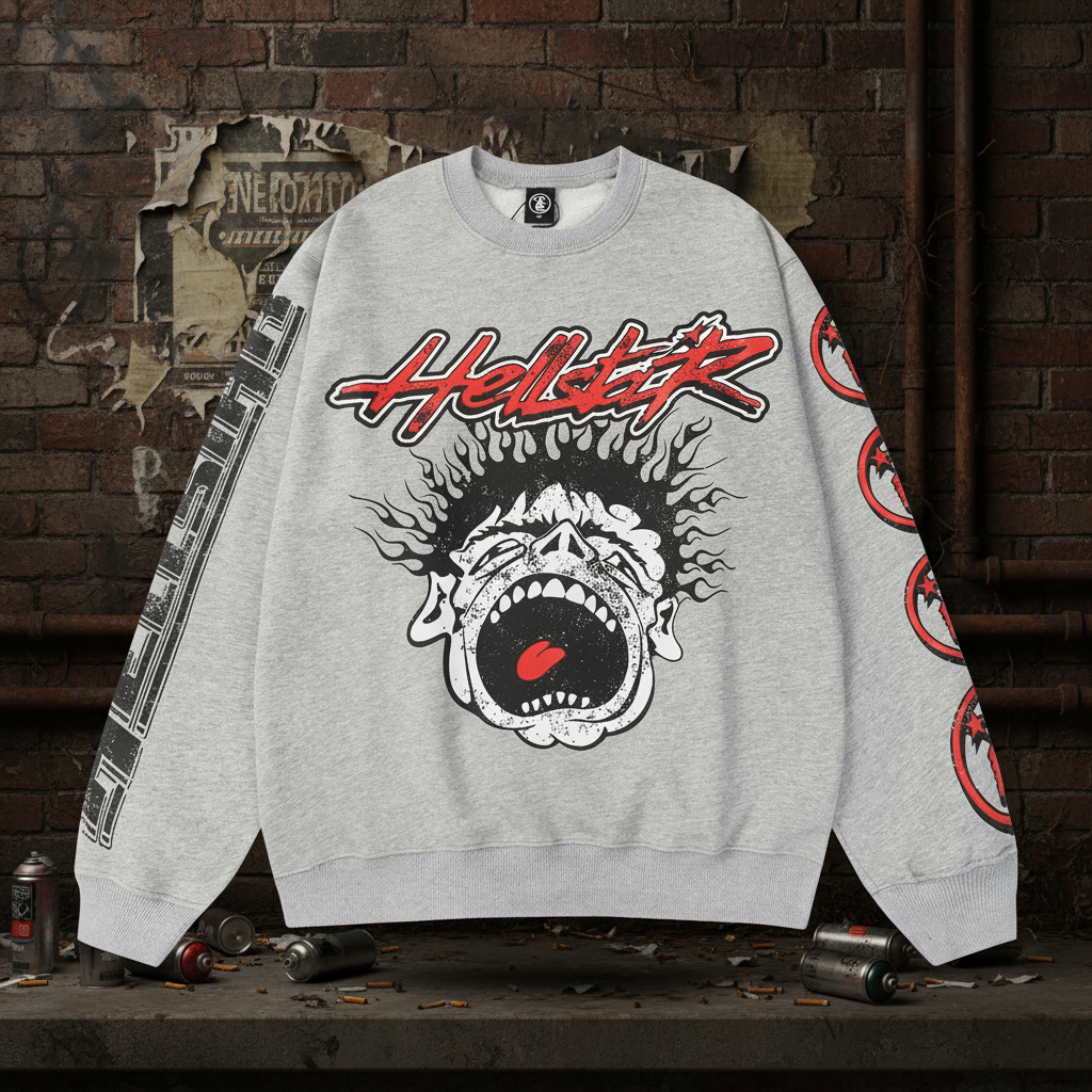 / Hellstar Hoodie Men Women Grey Cotton Blend Graffiti Streetwear