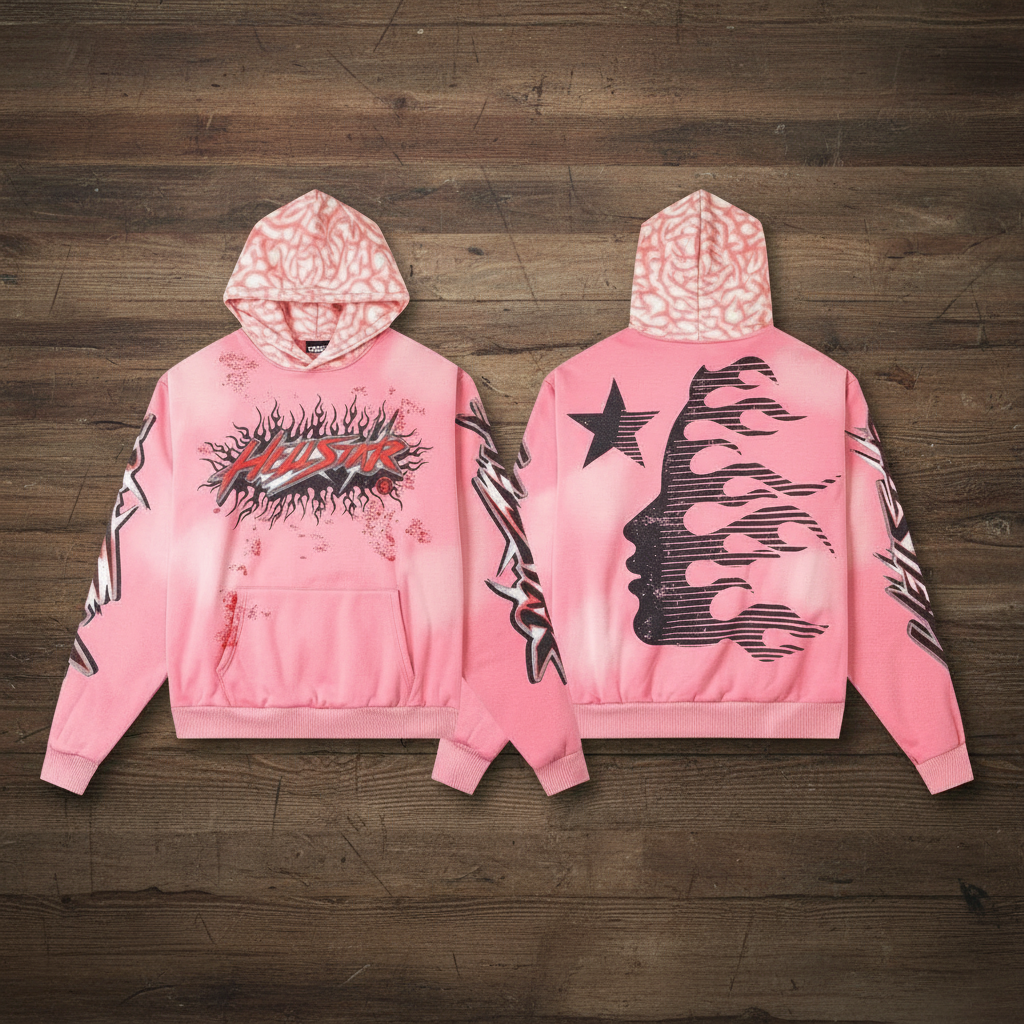 / Hellstar Pink Washed Fleece Hoodie – Unisex Retro High-Street