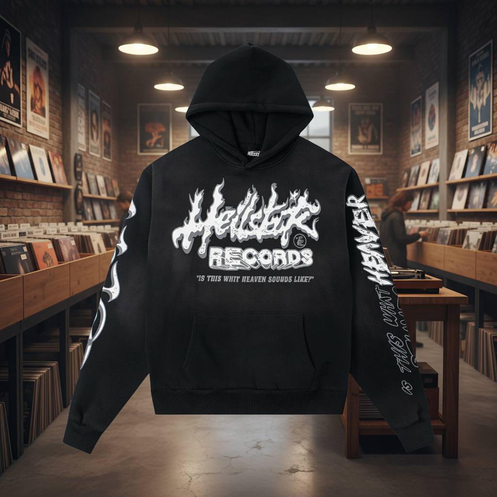 Hellstar Records Black Fleece Hoodie Vintage Flame Unisex Streetwear