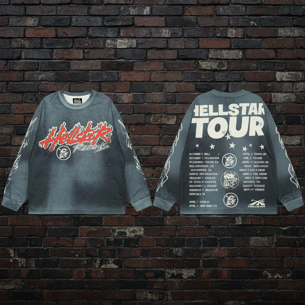 / Hellstar Records Distressed Blue Tee – Unisex Cotton Tour Top