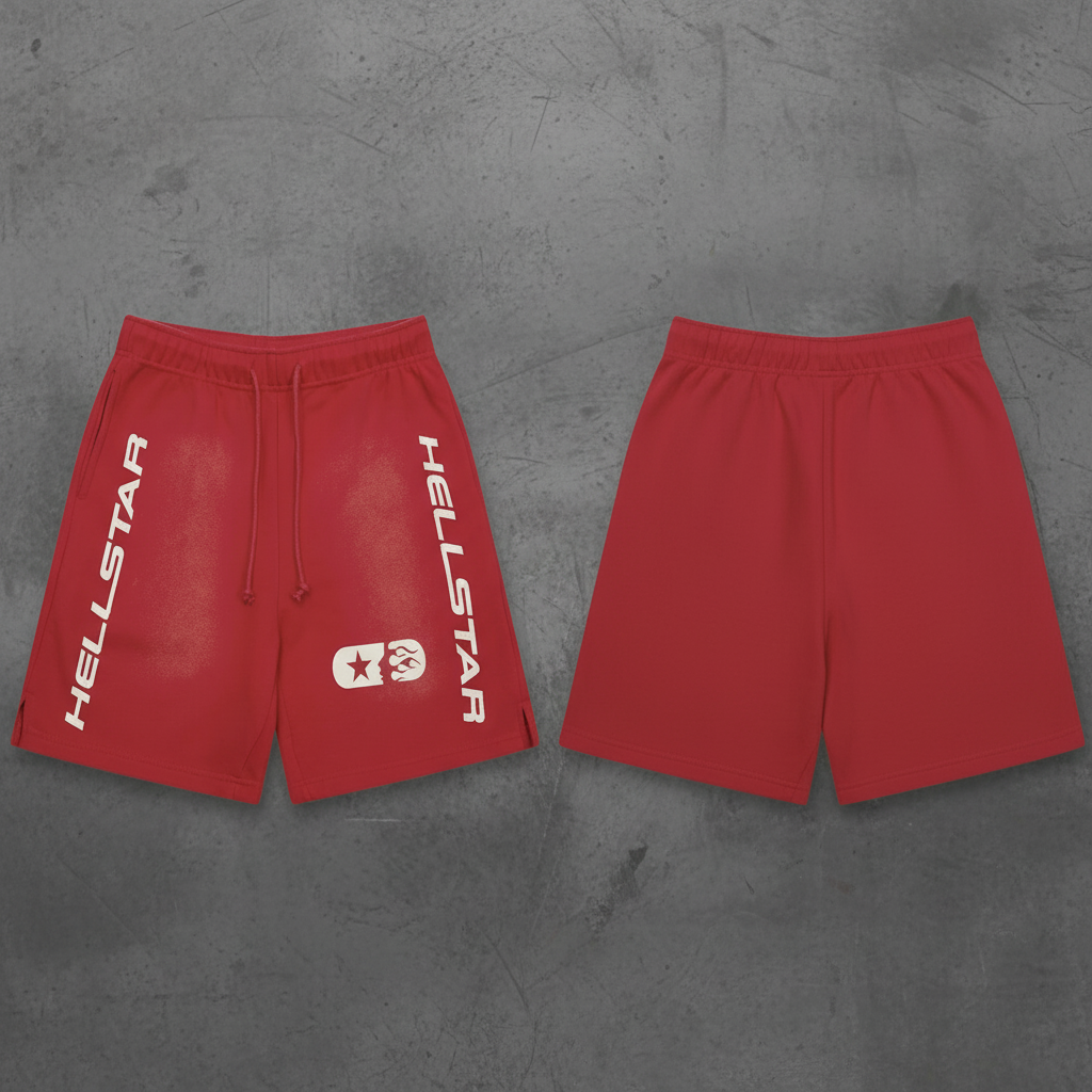 / Hellstar Red Cotton Shorts – Adjustable Waist, Unisex Streetwear