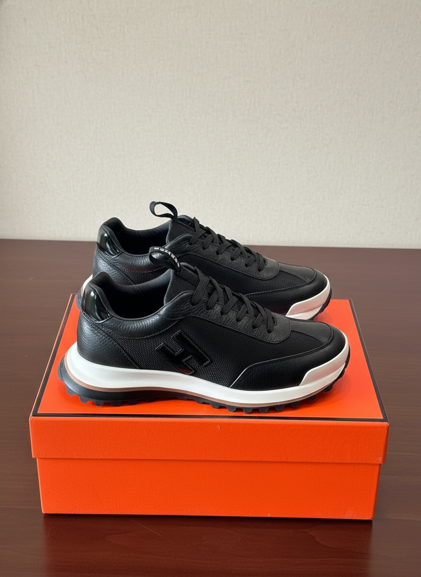 Hermes Black Leather Casual Sneakers