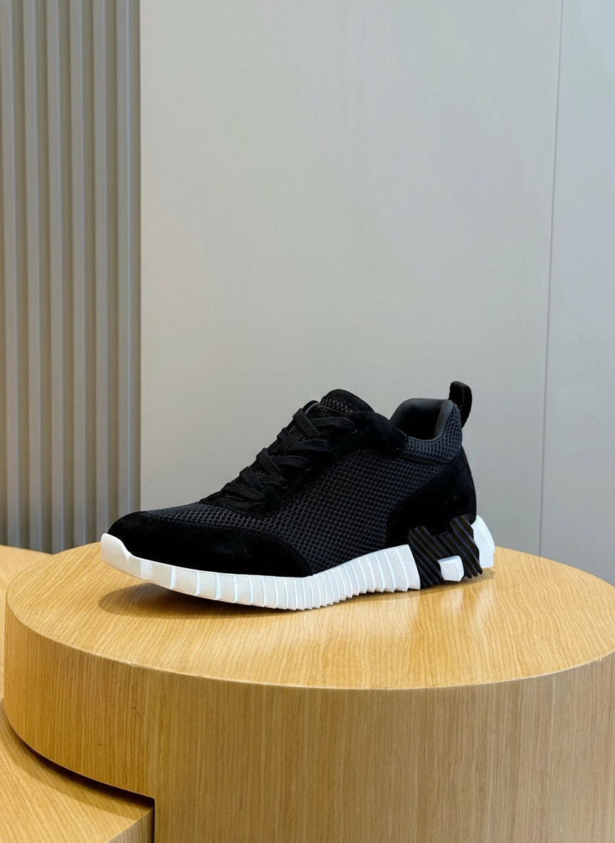 Hermes Black Mesh Sneakers with White Sole, Lightweight Breathable Design, Perfect for Casual Wear and Walking Comfort