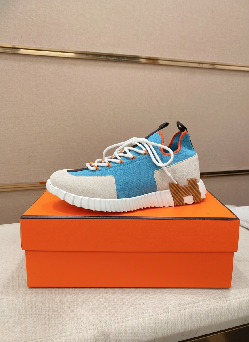 Hermes Blue Orange Mesh Sneakers Casual Shoes