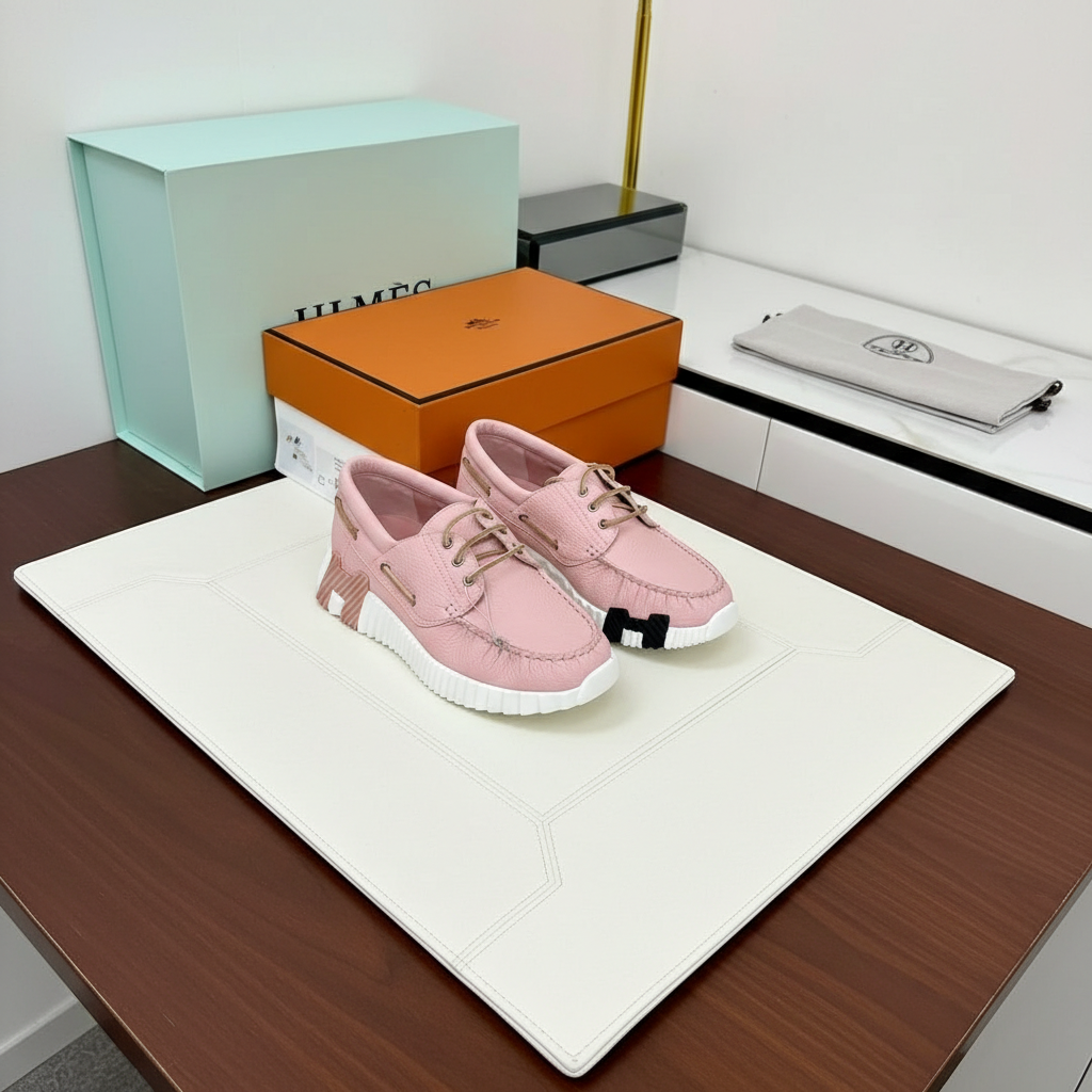 Hermes Pink Leather Casual Sneakers with Chunky White Sole, Stylish Comfort for Everyday Wear, Luxury Design Perfect for Fashion-Forward Looks
