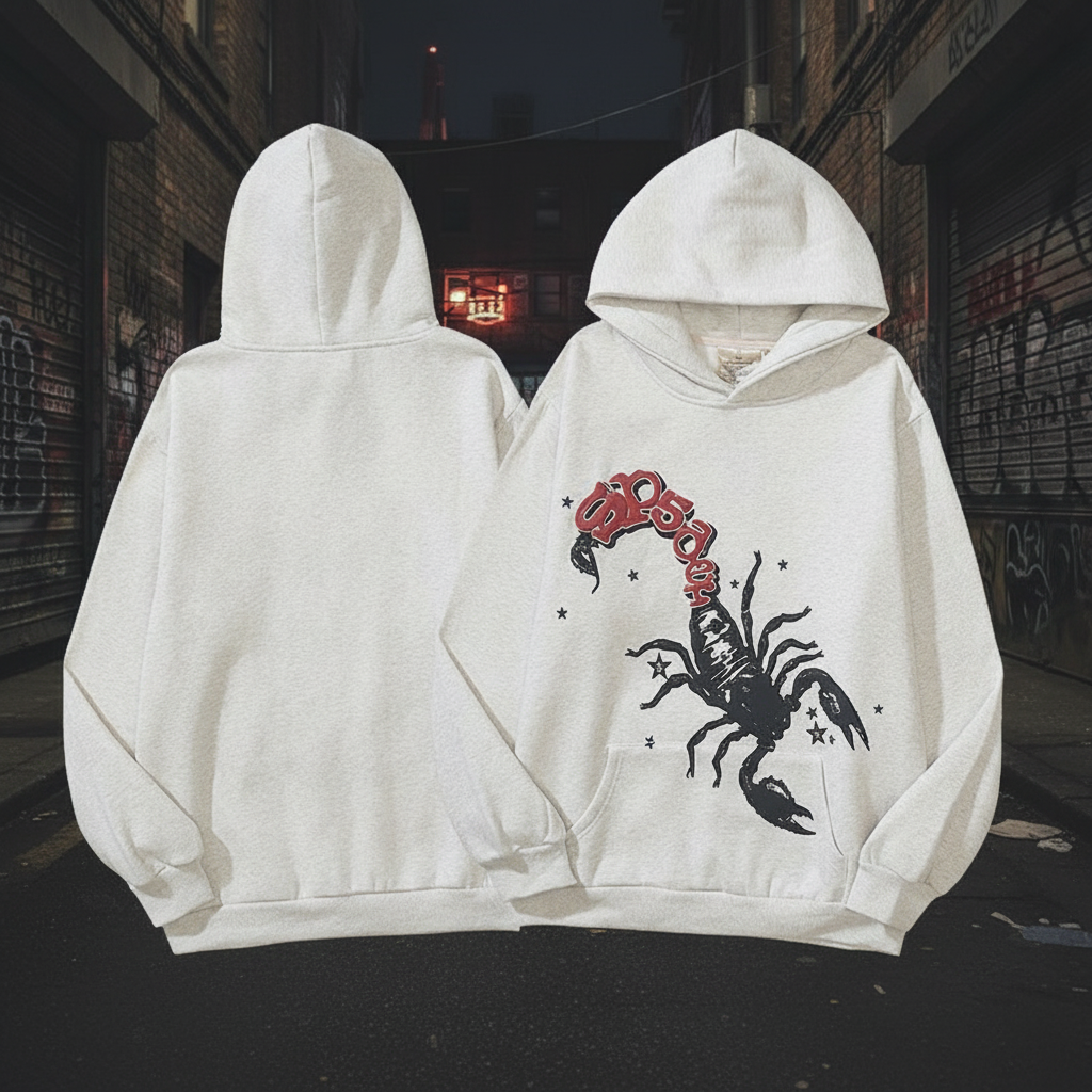 HoodiesRevenge Scorpion Graphic Hoodie, casual streetwear style, soft cotton blend, comfortable fit, perfect for fashion lovers seeking unique urban designs.