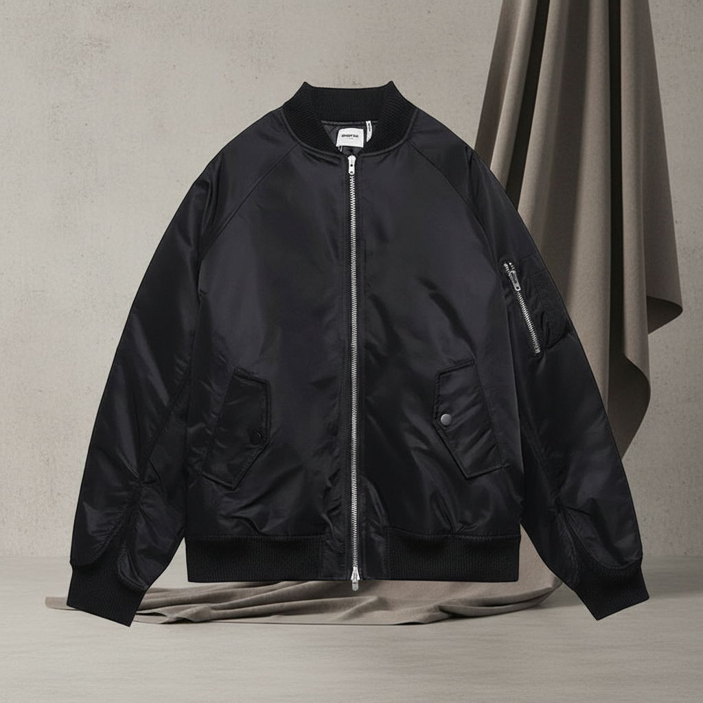JacketsEssentials Black Bomber Zip-Up Casual Jacket