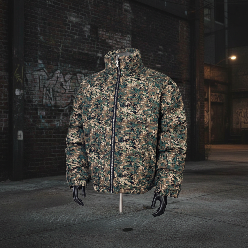 JacketsThugclub camouflage puffer jacket, warm winter coat with full zip, durable outerwear for outdoor activities and streetwear fashion.