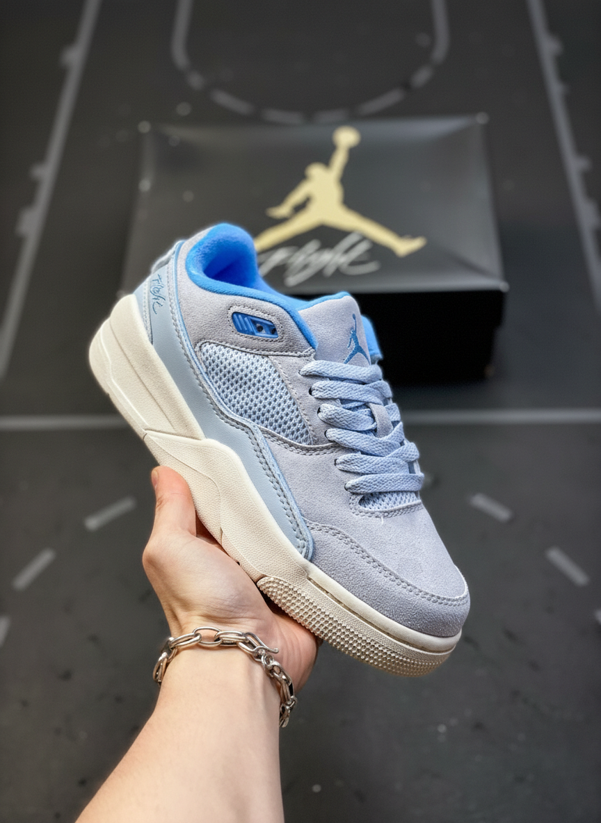 Jordan JDY302A16 Light Blue Suede Sneakers, breathable mesh panels, cushioned sole, stylish comfort for sizes 36-45.