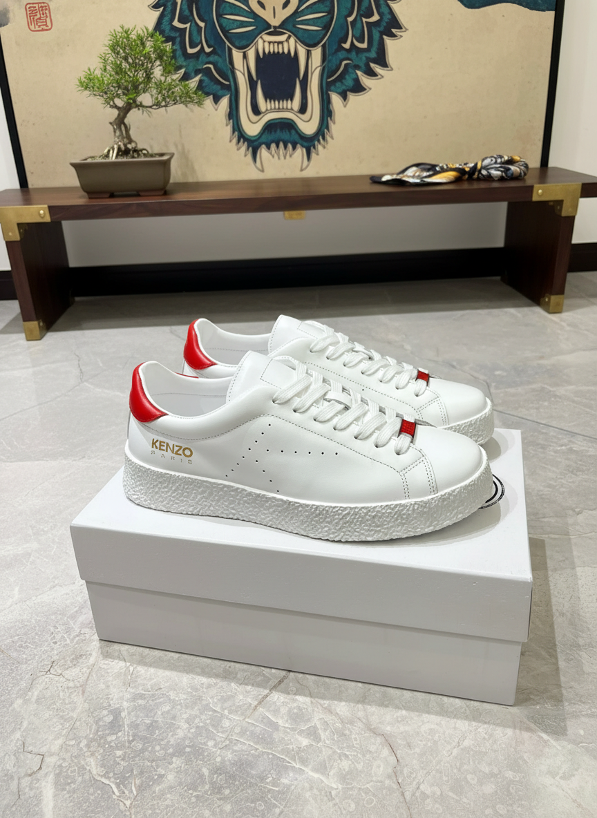 Kenzo Paris White Red Leather Sneakers
