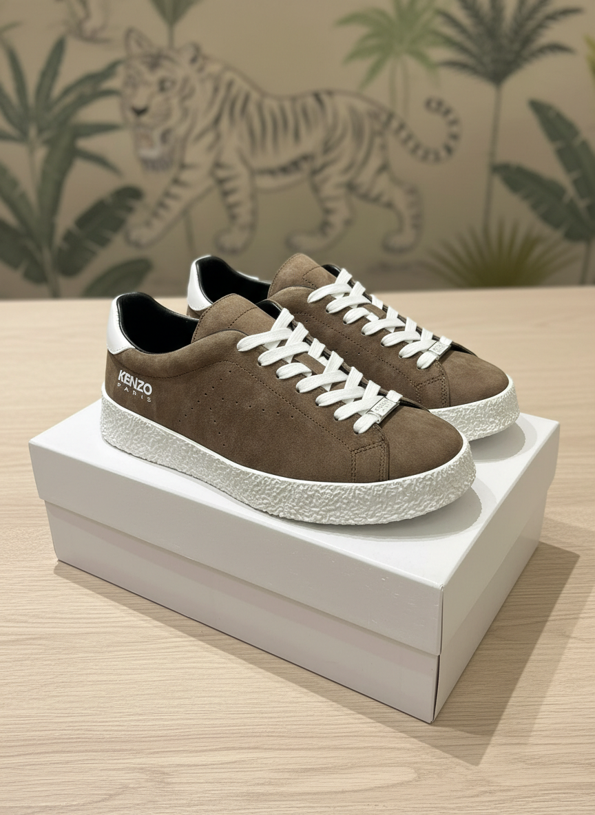 Kenzo Paris suede sneakers with white rubber sole and lace-up design, stylish and comfortable casual shoes perfect for everyday wear.