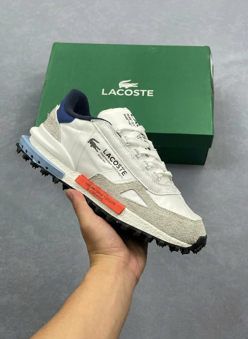 Lacoste Men’s Retro Style Sneakers, White Leather with Suede Trim, Comfortable Grip Sole, Fashion Sport Shoes, Size 40-45.